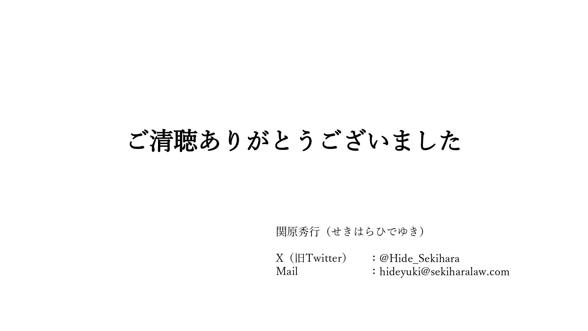 ご清聴ありがとうございました 関原秀行(せきはらひでゆき) X(旧Twitter) Mail :@Hide_Sekihara :