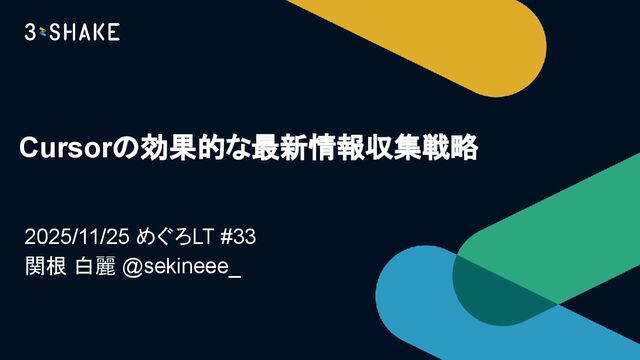 Cursorの効果的な最新情報収集戦略 2025/11/25 めぐろLT #33 関根 白麗 @sekineee_