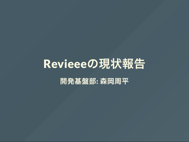 Revieee の現状報告 開発基盤部: 森岡周平