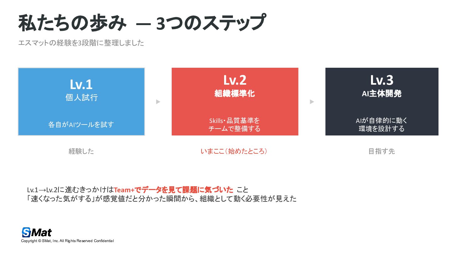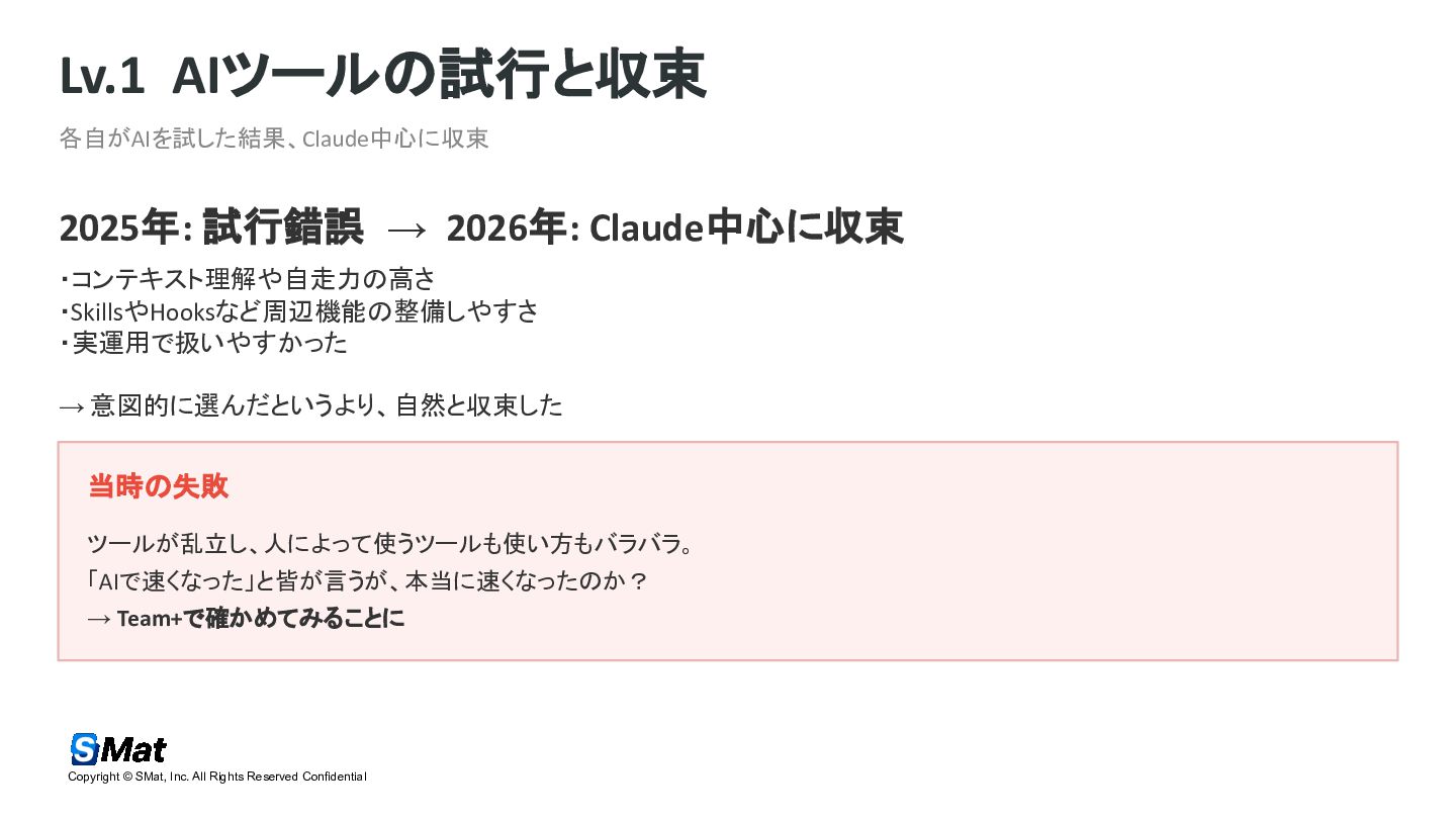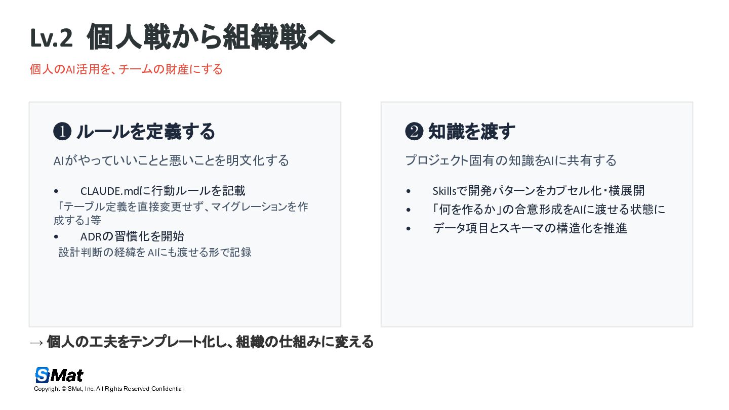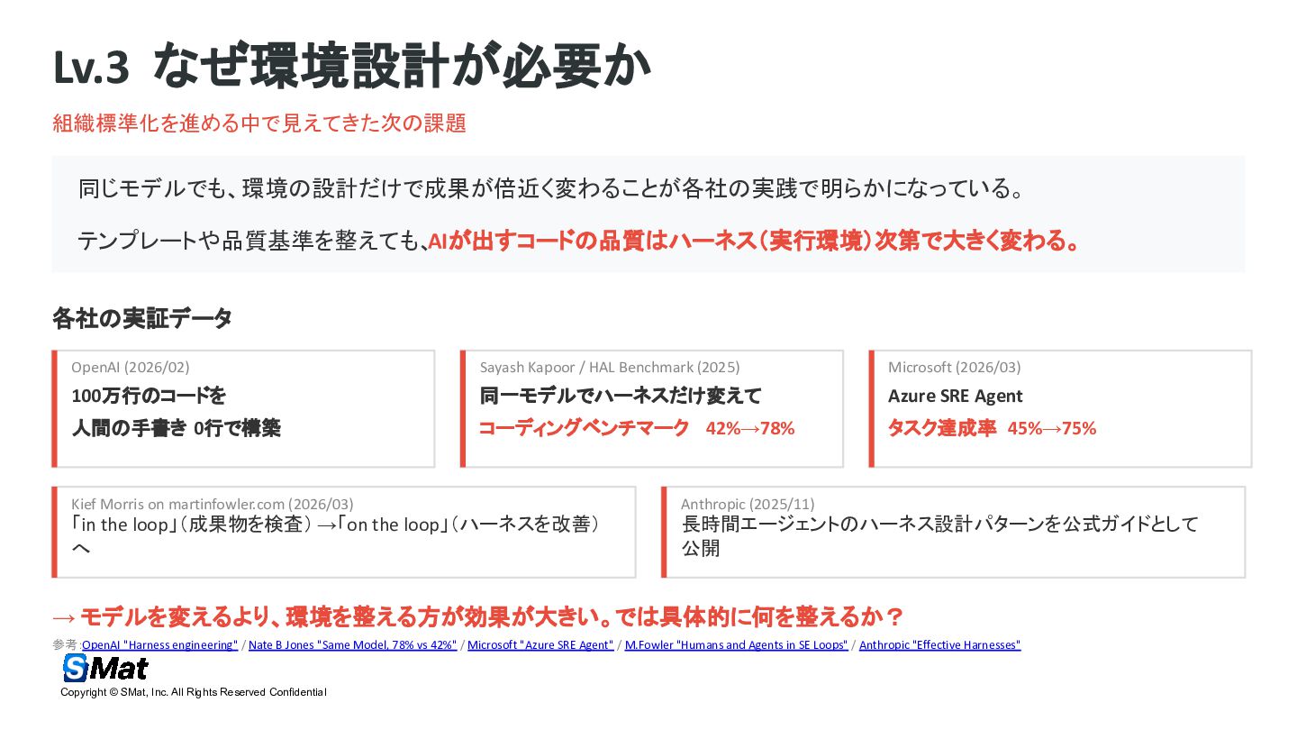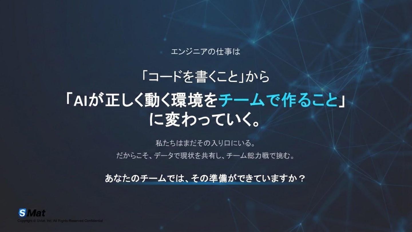 https://jp.findy-team.io/event/live/aidd_org_optimization_260324/ 2026/03/24 AI駆動開発の最前線 個人最適から組織最適への変革 AI活用における「感覚値」からの脱却にて登壇した資料になります