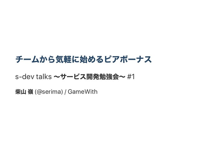 チー ムから気軽に始めるピアボー ナス s‑dev talks ~ サー ビス開発勉強会~ #1 柴山