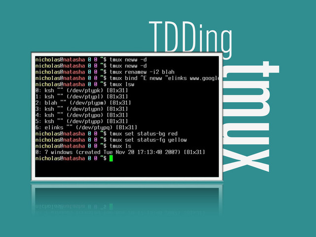 running Running all specs *F Failures: 1) tmux::default should create the tmux.conf file Failure/Error: runner.should create_file('/etc/ tmux.conf') No source template named 'tmux.conf.erb' found in the default locations. # ./cookbooks/tmux/spec/default_spec.rb:12:in `block (2 levels) in <top (required)>' Finished in 0.15691 seconds 2 examples, 1 passed, 1 failures