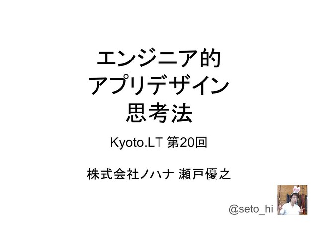 エンジニア的 アプリデザイン 思考法 Kyoto.LT 第20回 株式会社ノハナ 瀬戸優之 @seto_hi