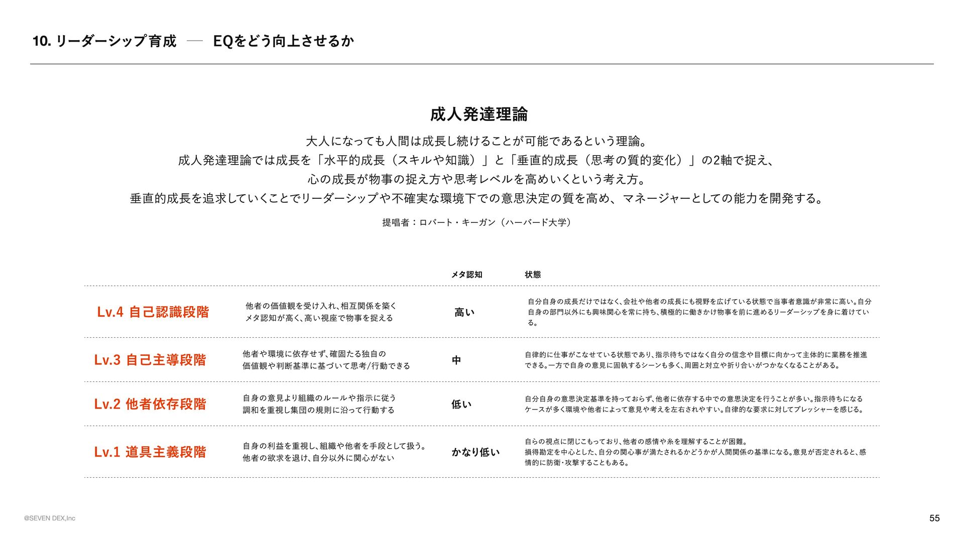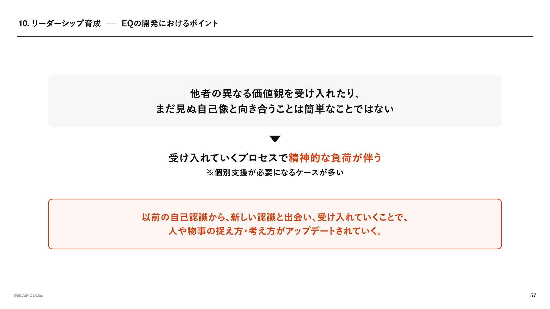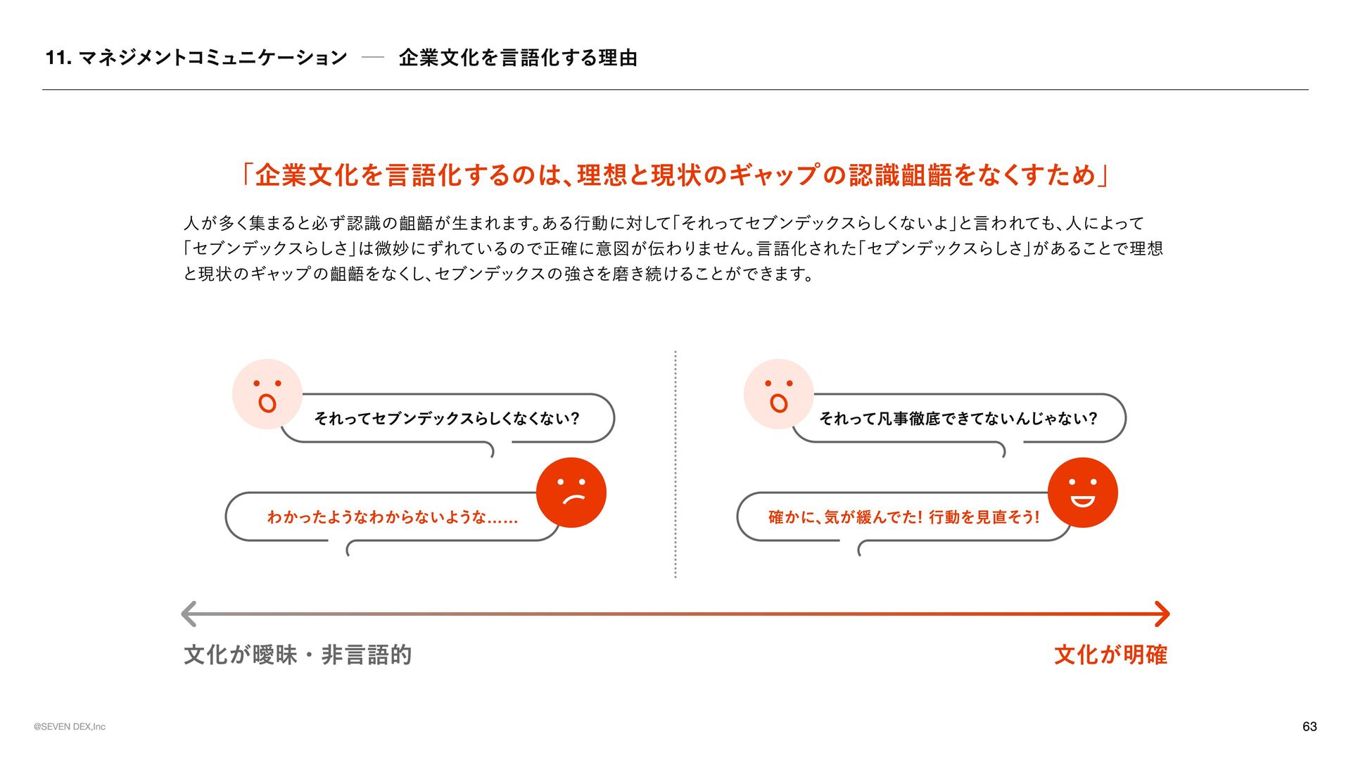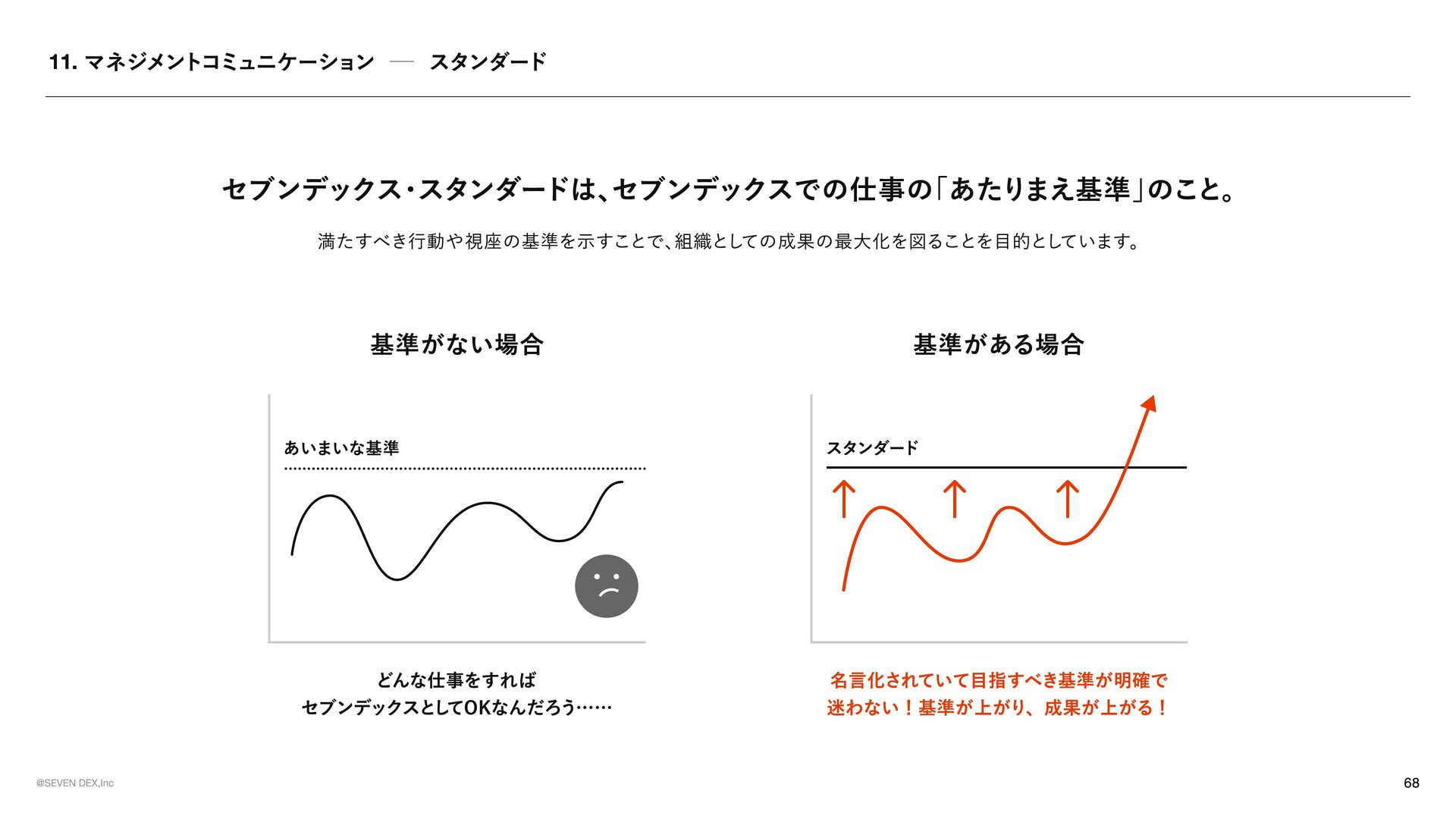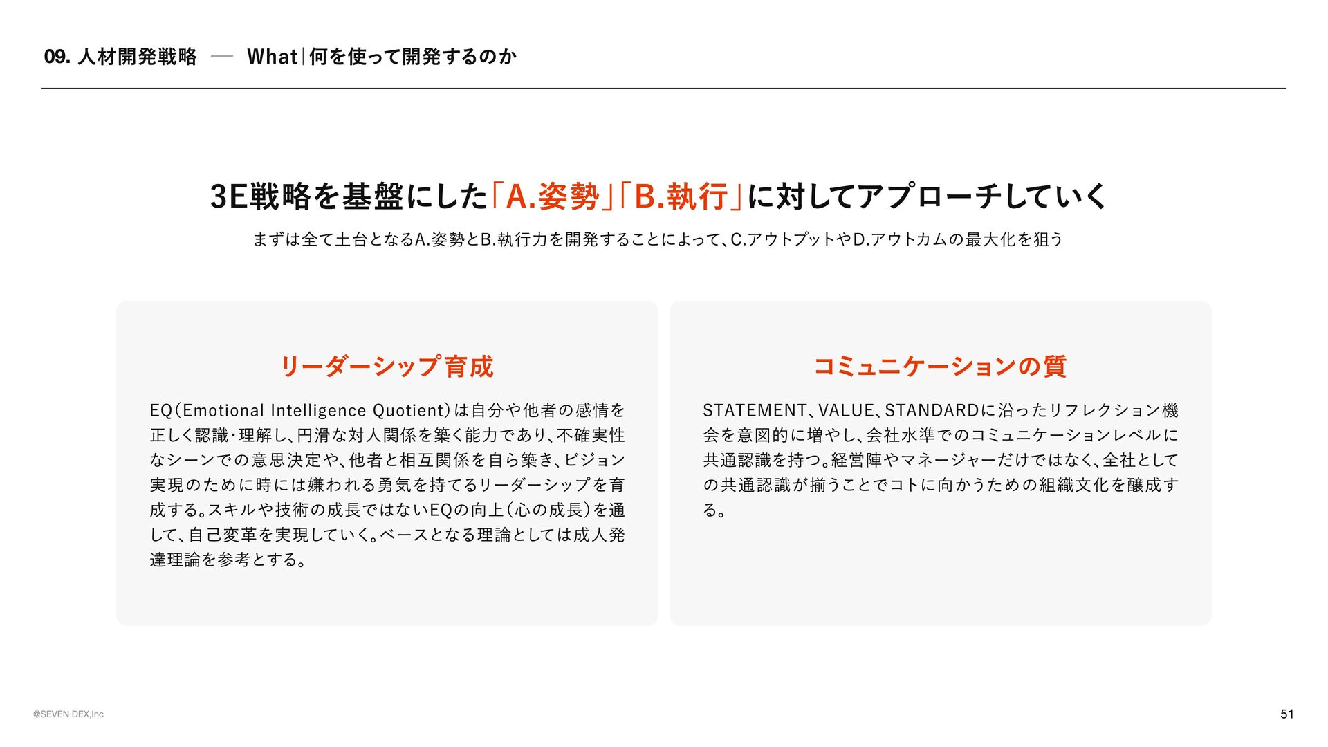 TEMENT セブンデックスが 「どんな姿勢で、 どんな選択をする会社であり続けるか」 を示した行動の約束 マーケティングの力で革命を起こす 提供する価値が顧客体験として届き、 その体験が共感や支持を生み、 次の成長へと繋がっていく流れをつくる 社会が前進する可能性のある領域に参入する 表面だけを変えるビジネスではなく、 ユーザーや社会にとって実感できる価値が増える領域で挑戦する No.1を目指す 良いだけでは満足せず、 選ばれ、 ココロが動く存在でありたいからこそ、 常に一番上の水準に挑戦し続ける メイクドラ マをあ らゆ る と こ ろ で 日 常の 中 に感 情 を 重ね 、 出来事 を 経 験や感動へと変えていくことで、 一つ ひ とつを 特別 な も のにしていこ う 今 のあ たりまえ を 打ち壊し 、 次 のあ たりまえ の 先駆者 に なれ 慣習 や 前例 をその まま踏襲 せず、 本当 に価値があるかを 考 え 直 し、 よ り良い 形 を 自 ら 試 し、 広げ ていく 可能性に ベットし凡事徹底 で 貫く 将来性 を感 じ た挑戦に 本気 で 向 き 合 い、 日々 の 基本 や 約束 を 徹底的積 み 重ね 続けることで 結果 につな げ る そろばん を 持ってロ マンを 語 る 組織 に 現 実 的判断 や 計算 は 重ね ながら も 、 どん な 未来 をつくりたいのかとい う ロ マンも大切 に 語 る 形骸化や惰 性を 嫌い 、 組織 の サビ を 防ぐ 決ま ったやり 方 を続けることに 安心 せず、 今も意味 があるかを 問 い 直 し、 必要 なら変え続けていこ う 挑戦した敗者 に はセカ ン ドチャ ン ス を 与え る 最後ま で 向 き 合 った挑戦から 学び を 正 しく 受 け 止め 、 その 経 験を次に 活 かす 姿勢 を持つ 人 には 再び 挑戦の 機 会を ひ らく 意欲 ある 人 に は年齢やキャリア に 関係なく抜擢 を 肩書 きや 年 次ではなく、 挑戦したい 意志 とその 責任 を 引 き 受 ける 覚悟も重視 し、 機 会と 役割 を 積極的 に 託 す チ ー ムセブ ン デックス の 意識 を 常 に 持つ 自分 の 言 動が 個人 の も のにと どま らず、 仲間 や 組織全 体の 評 価につながることを 意識 しながら 行 動する モラル のある会社に ル ー ル に 縛 られるだけでなく 自由 な挑戦の 中 で も何 を 大切 にす べ きかを 考 える 。 採用は全 力を 尽く す 今 を 埋め るた め ではなく、 これからの セブンデック スを共につくる 仲間 を 迎 えるた め に、 時間も労力も惜 し ま ず 向 き 合う