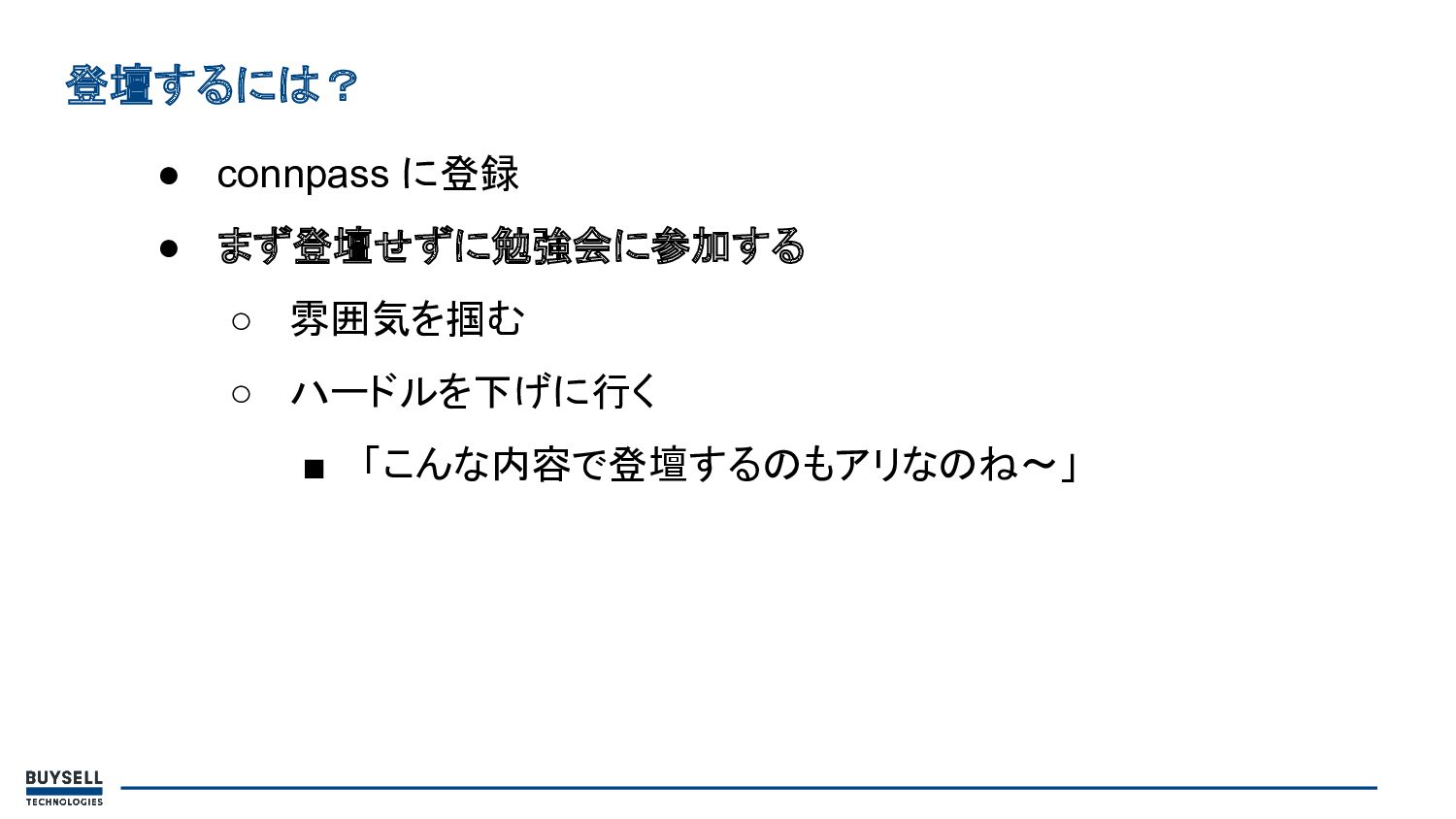そしたら、早速登壇してみよう というのは嘘です