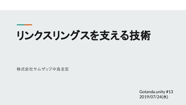 リンクスリングスを支える技術 株式会社サムザップ 中島圭宏 Gotanda.unity #13 2019/07/24(水)