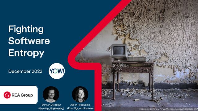 Join us to hear about how REA Group are fighting software entropy - including measurement, process, company wide objectives, and ultimately lowering total cost of ownership and cognitive load through our platform product strategy.