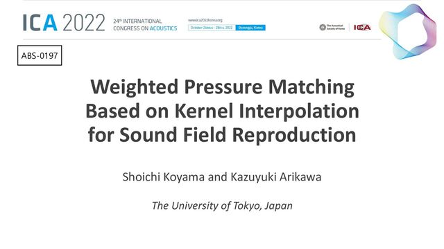 Slides for "Weighted Pressure Matching Based on Kernel Interpolation for Sound Field Reproduction" presented at 24th International Congress on Acoustics (ICA) 2022