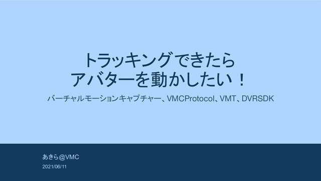 トラッキングできたら アバターを動かしたい! バーチャルモーションキャプチャー、VMCProtocol、VMT、DVRSDK あきら@VMC 2021/06/11