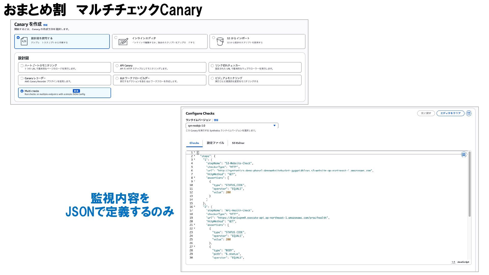 おまとめ割 マルチチェックCanary 監視内容を JSONで定義するのみ