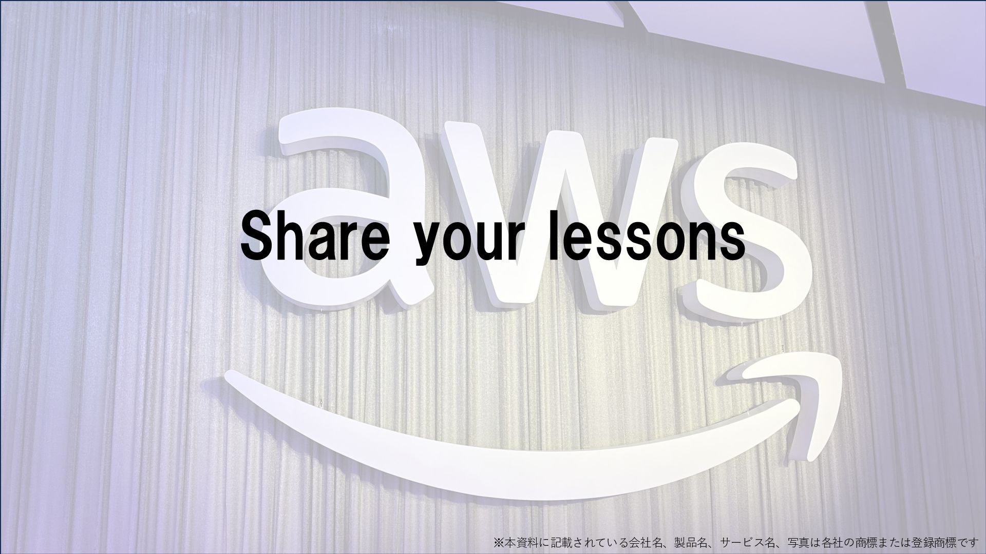 ※本資料に記載されている会社名、製品名、サービス名、写真は各社の商標または登録商標です Share your lessons