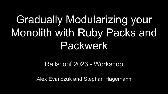 Join us to apply the packs ecosystem and packwerk to gradually modularize your application. We'll dive into decomposing your application, moving files into packs, and coming up with a technical and managerial plan to successfully roll this out to and get buy-in from the rest of your organization.