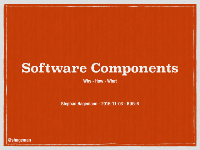 Software Components Why - How - What Stephan Hagemann -