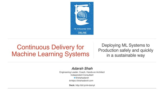6. https://shahadarsh.com @shahadarsh Deck: http://bit.ly/ml-dod-pl What is Continuous Delivery? Continuous Delivery