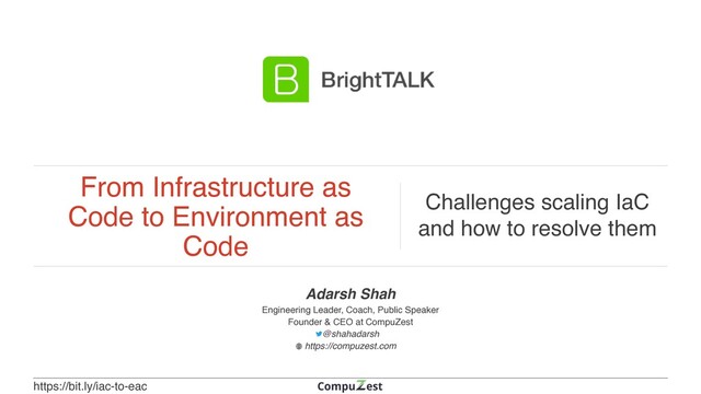 In this presentation, we will introduce Environment as Code (abstraction over IaC) that enables teams to provision & teardown entire Environments in an efficient way and promotes best practices like loosely coupled infrastructure resources.