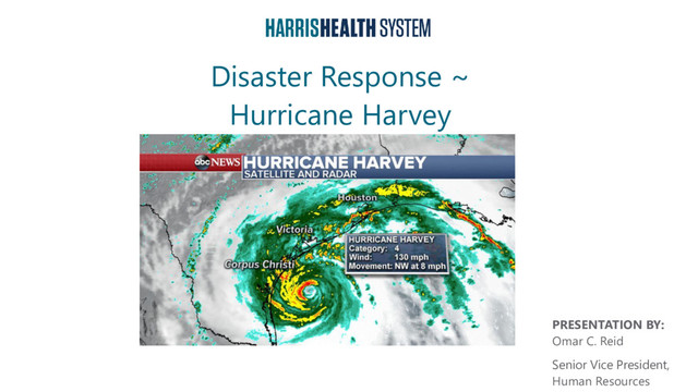 Houston area in late August. While employees continued to serve patients, Harris Health System served employees facing personal hardship. More than 600 people applied for assistance from Harris Health’s Disaster Relief program. Collectively, those employees sustained $9.6 million in damage to their homes, vehicles and belongings. The Human Resources (HR) department formed a task force to communicate with employees throughout the storm and assist with recovery. Immediately after Hurricane Harvey, the HR department shifted from normal duties to disaster relief. We put together a key stakeholder task force to facilitate the needs of our employees.