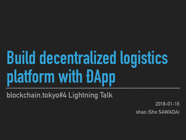 Build decentralized logistics platform with ÐApp blockchain.tokyo#4 Lightning Talk 2018-01-16