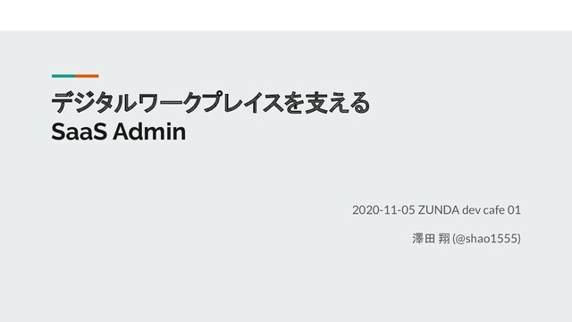 デジタルワークプレイスを支える SaaS Admin 2020-11-05 ZUNDA dev cafe 01 澤田 翔