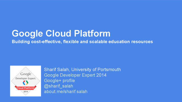 Google Apps for Education has helped transform the way that technology is used to drive collaborative and flexible learning in Higher Education. Google Cloud Platform which includes App Engine, Compute Engine and BigQuery can be tightly integrated into any existing deployment of Google Apps and allows organisations to build custom functionality and services using the same underlying foundations that power Google’s own services. This talk will include a number of case studies to explore how you can build next generation teaching services on Google Cloud Platform to compliment existing use of Google Apps and Chromebooks. The talk will also explore the use of App Engine and Compute Engine to deliver highly cost-effective, flexible and scalable virtual computing labs.