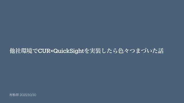 ଜদ 2025/10/30 ଞࣾڥͰCUR×QuickSightΛ࣮ͨ͠Β৭ʑͭ·͍ͮͨ