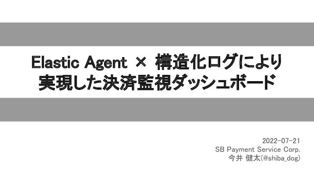 Elastic Agent × 構造化ログにより 実現した決済監視ダッシュボード 2022-07-21 SB Payment Service Corp.