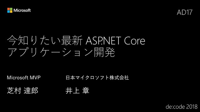 そろそろ ASP.NET Core を使ったアプリケーション開発に手を出したいと考えている方に、実際に ASP.NET Core アプリケーション開発を行う上でのコツや注意したいポイントと、2018 年 Q2 に RTM が予定されている ASP.NET Core 2.1 の情報も紹介します。
