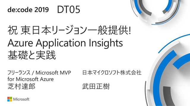 de:code 2019 DT05 祝 東日本リージョン一般提供! Azure Application Insights 基礎と実践 日本マイクロソフト株式会社