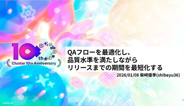 1. ⾃⼰紹介 • 柴﨑 優季 (shibayu36) • クラスター株式会社シニアソフトウェアエンジニア ◦ 開発フロー改善などの業務も ◦