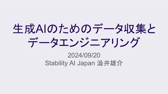 2024/09/20『第10回 Data-Centric AI勉強会 ~Stability AI特別回~』の登壇資料です。
