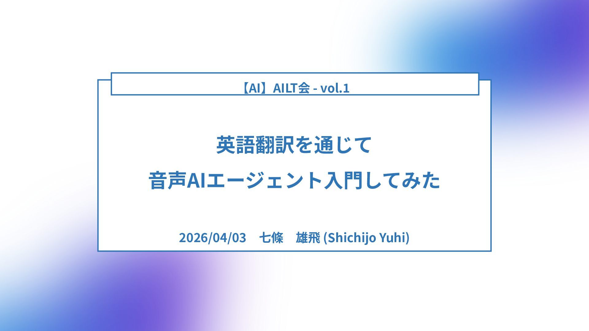 英語翻訳を通じて 音声AIエージェント入門してみた 【AI】AILT会 - vol.1 2026/04/03 七條 雄飛 (Shichijo Yuhi)