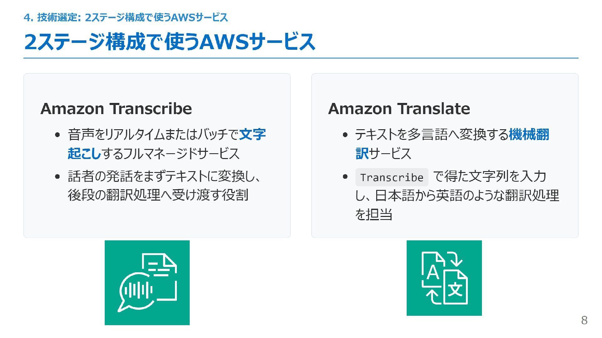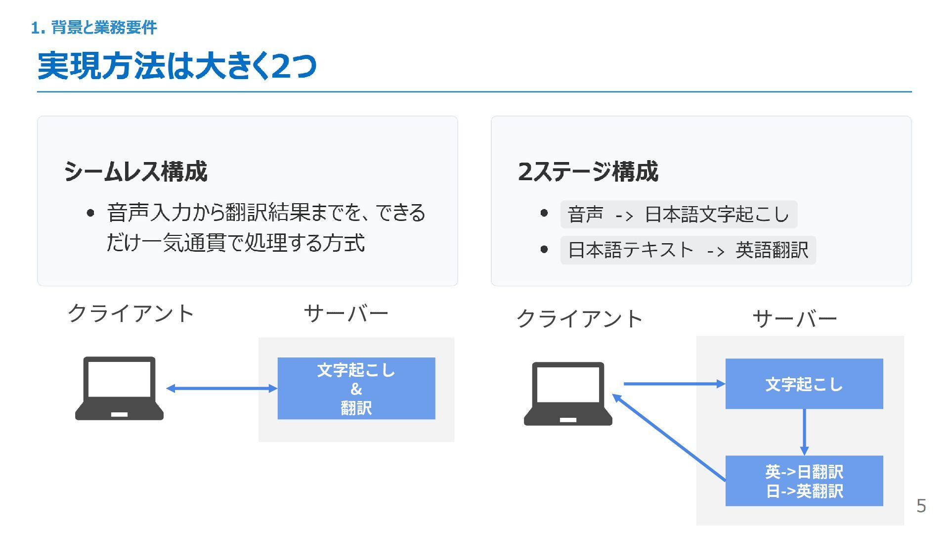 クライアント サーバー クライアント サーバー 文字起こし 英->日翻訳 日->英翻訳 文字起こし & 翻訳