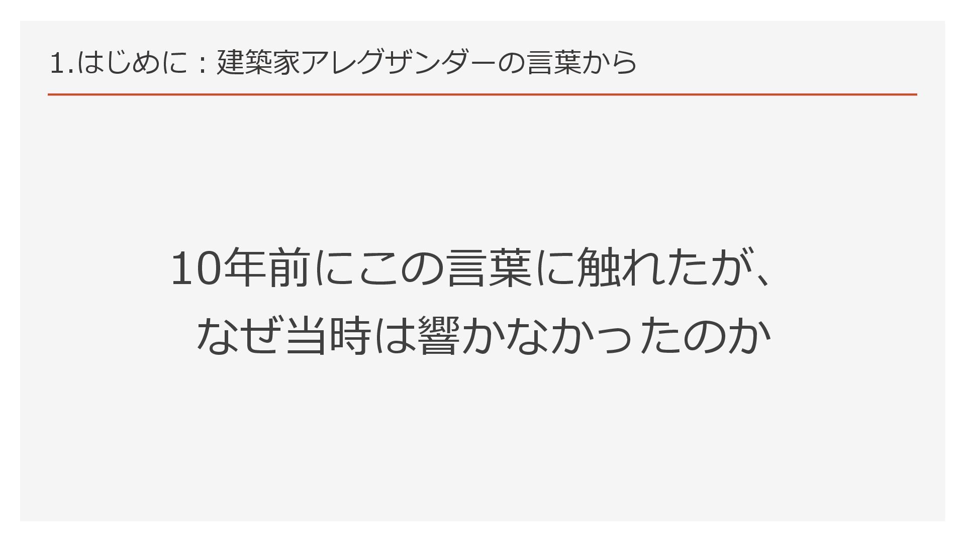 10年前にこの言葉に触れたが、 なぜ当時は響かなかったのか 1.はじめに:建築家アレグザンダーの言葉から