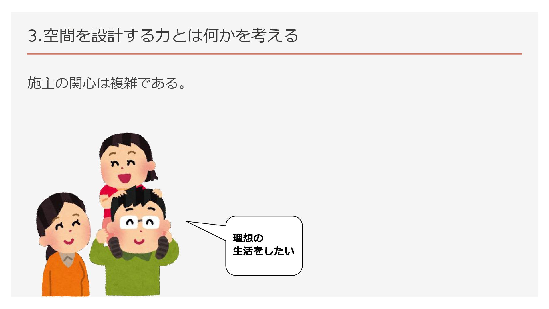3.空間を設計する力とは何かを考える 施主の関心は複雑である。 理想の 生活をしたい