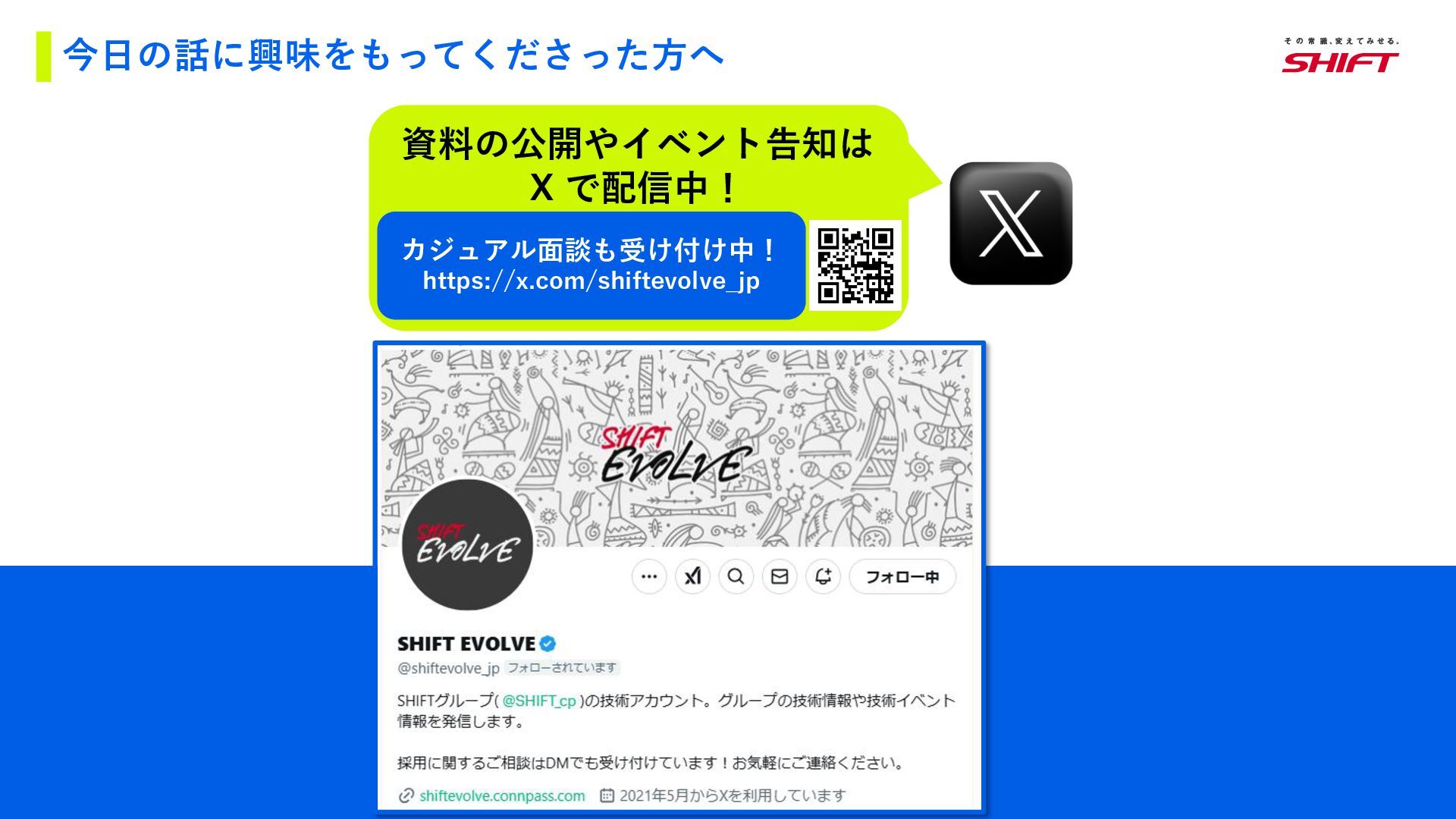 15 Copyright SHIFT Inc., All Rights Reserved. カジュアル面談も受け付け中! https://x.com/shiftevolve_jp 今日の話に興味をもってくださった方へ
