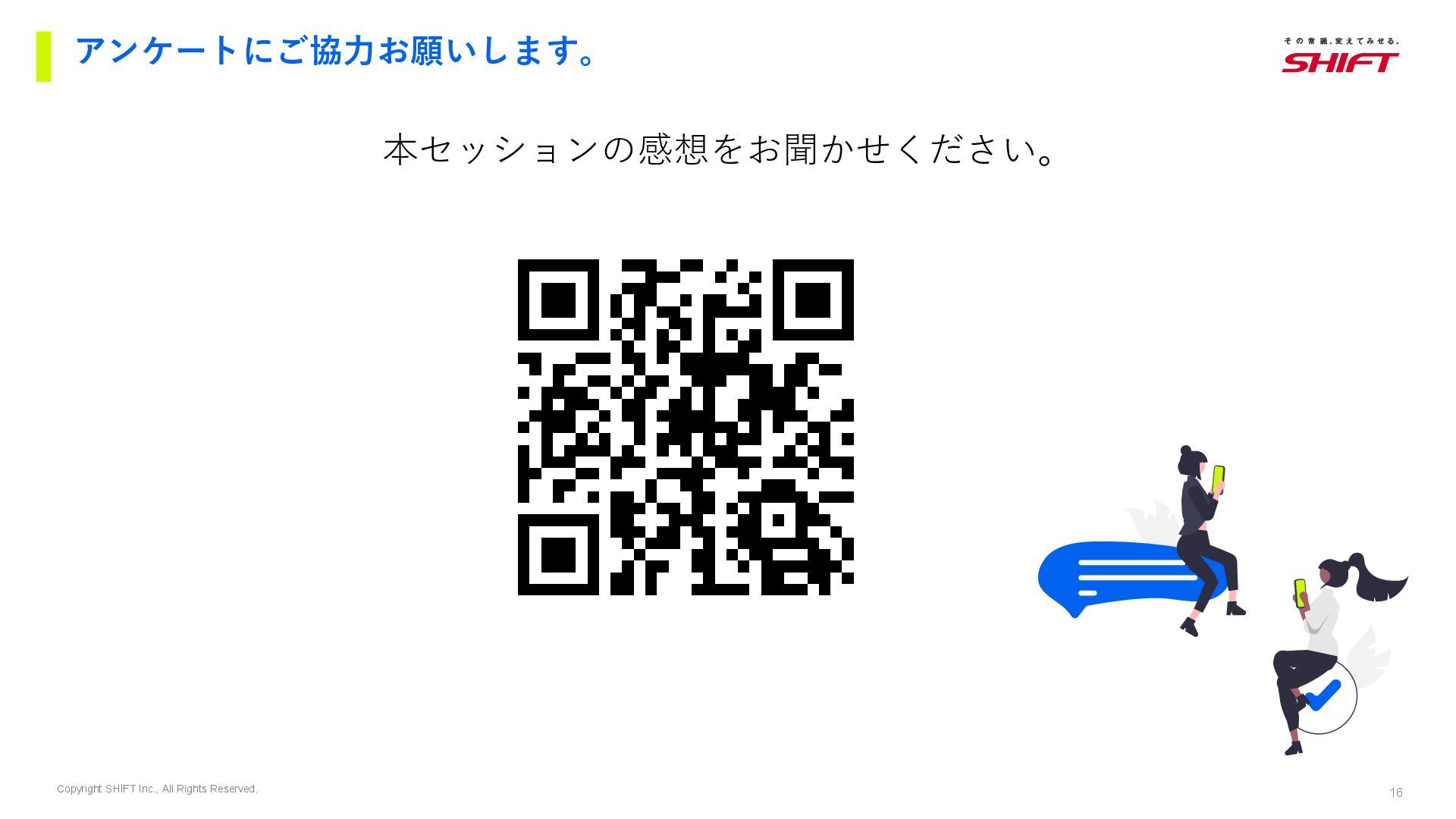 16 Copyright SHIFT Inc., All Rights Reserved. アンケートにご協力お願いします。 本セッションの感想をお聞かせください。