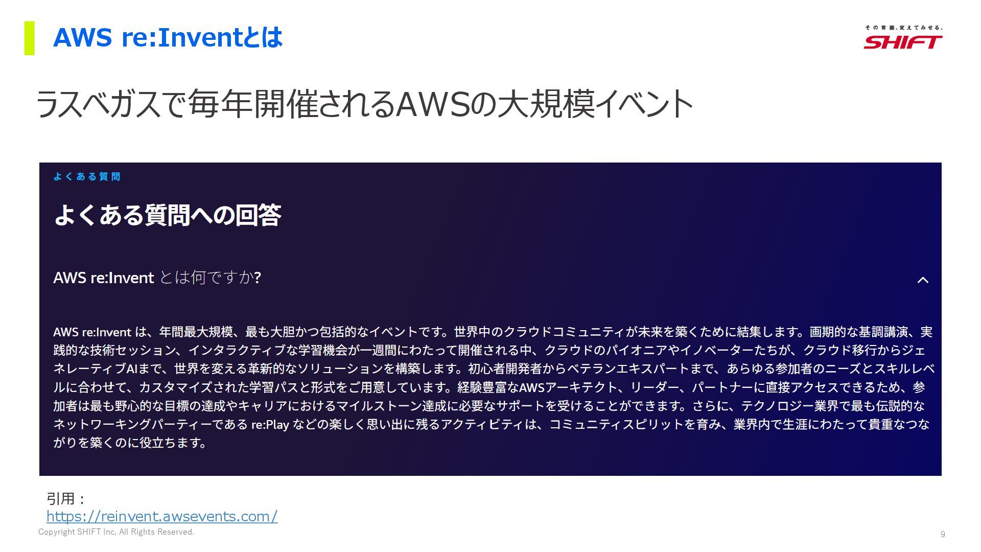 7. 9 Copyright SHIFT Inc, All Rights Reserved. AWS re:Inventとは 引用: