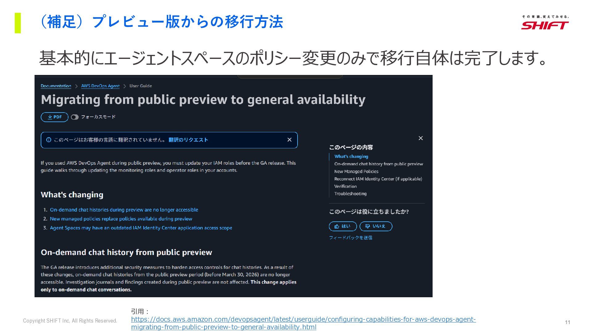 9. 11 Copyright SHIFT Inc, All Rights Reserved. (補足)プレビュー版からの移行方法 基本的にエージェントスペースのポリシー変更のみで移行自体は完了します。 引用: