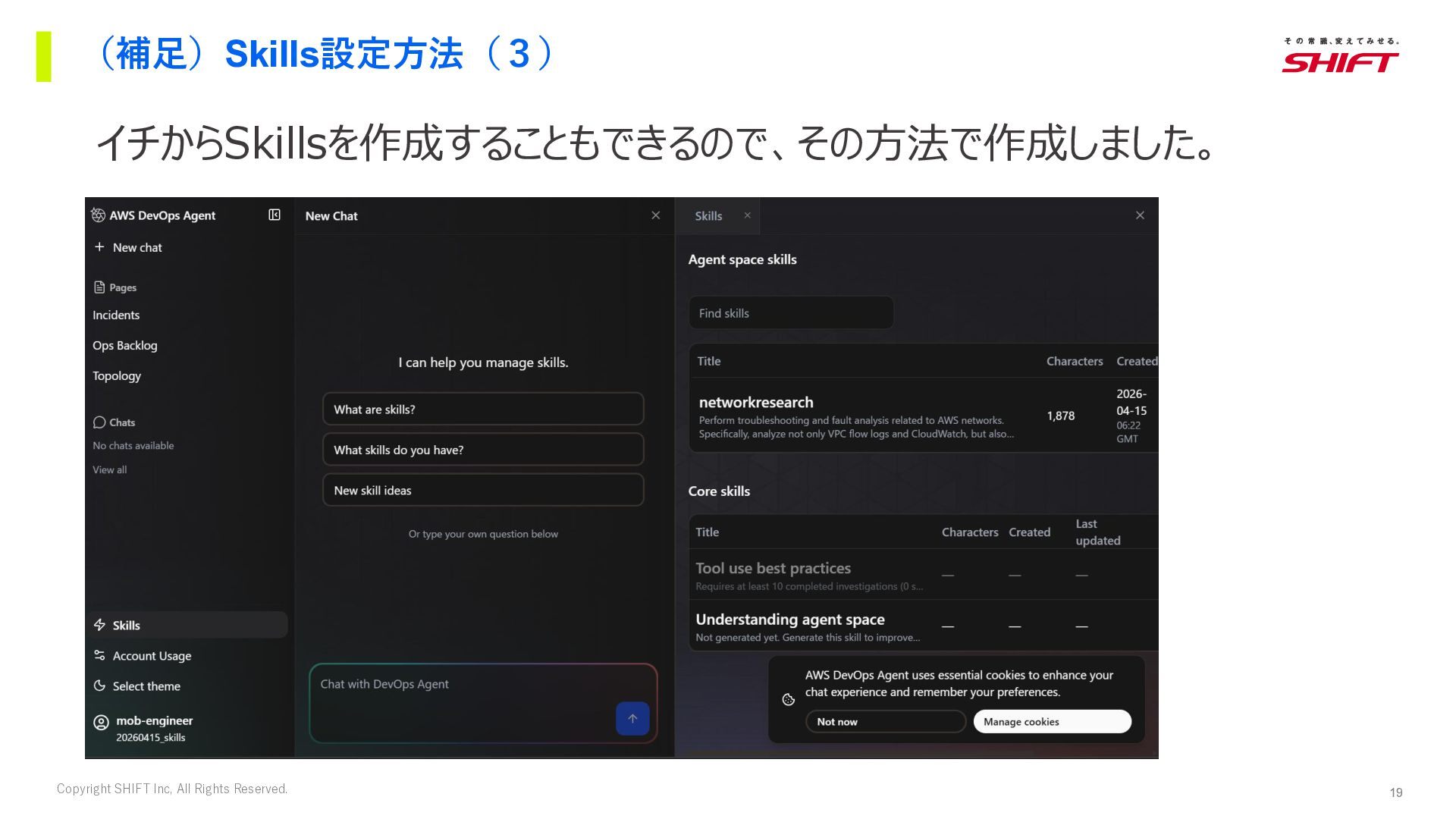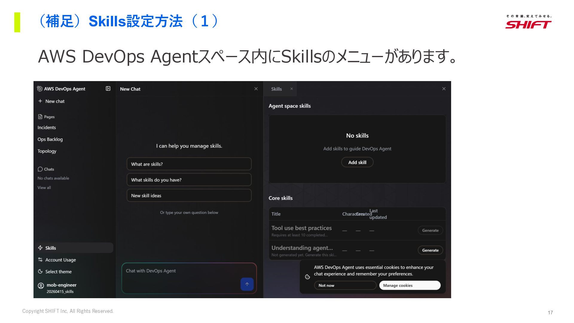 14. 17 Copyright SHIFT Inc, All Rights Reserved. (補足)Skills設定方法(1) AWS DevOps