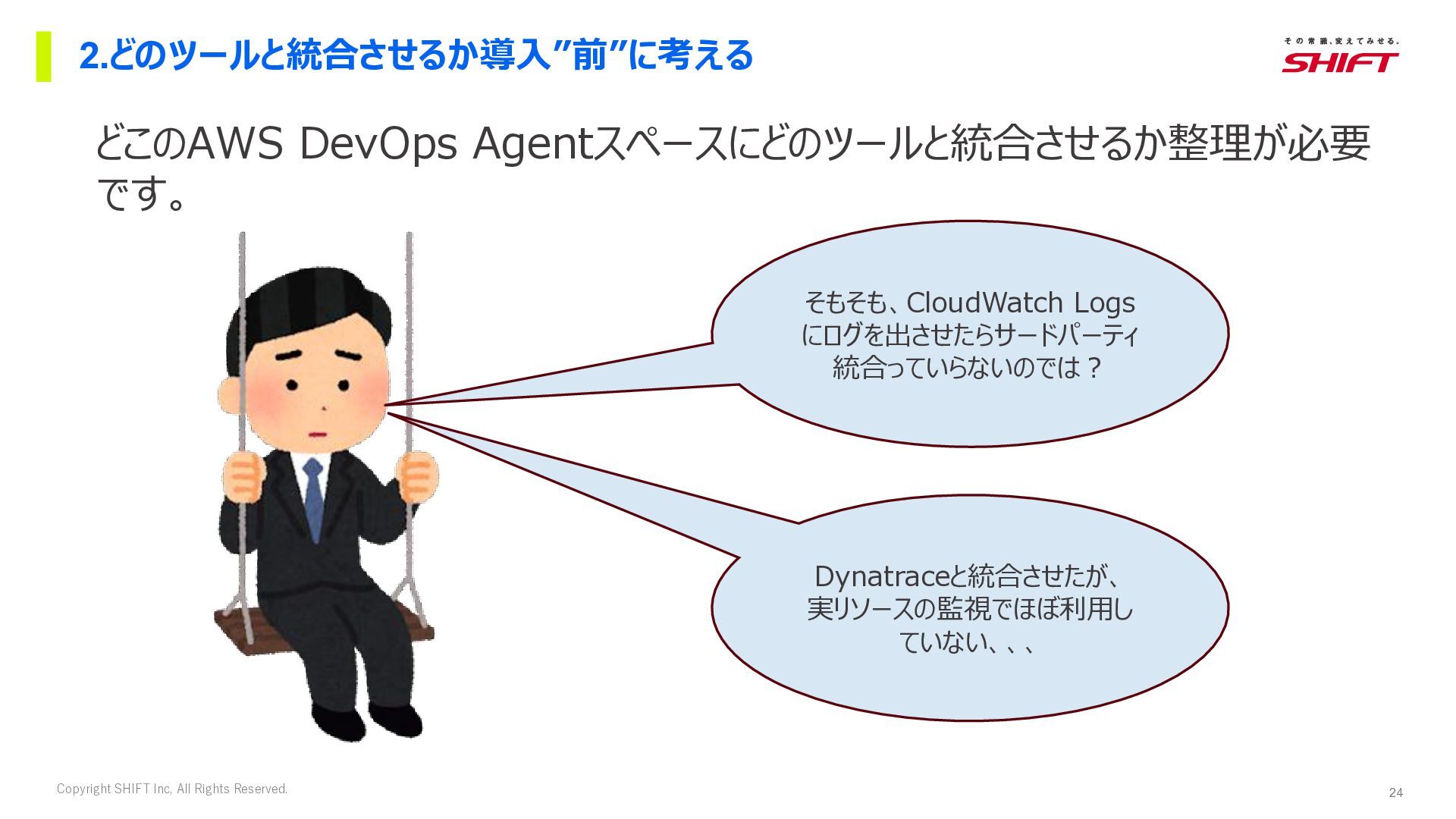 18. 24 Copyright SHIFT Inc, All Rights Reserved. 2.どのツールと統合させるか導入”前”に考える どこのAWS DevOps