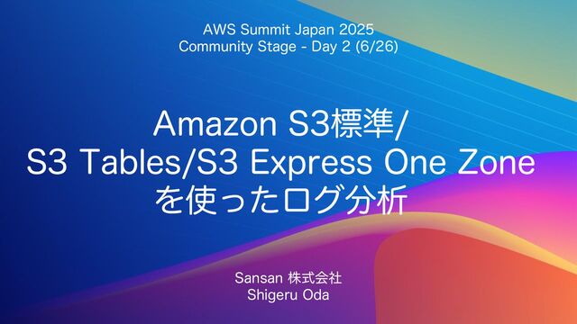 "NB[PO4ඪ४ 45BCMFT4&YQSFTT0OF;POF Λͬͨϩάੳ 4BOTBOגࣜձࣾ 4IJHFSV0EB "844VNNJU+BQBO $PNNVOJUZ4UBHF %BZ