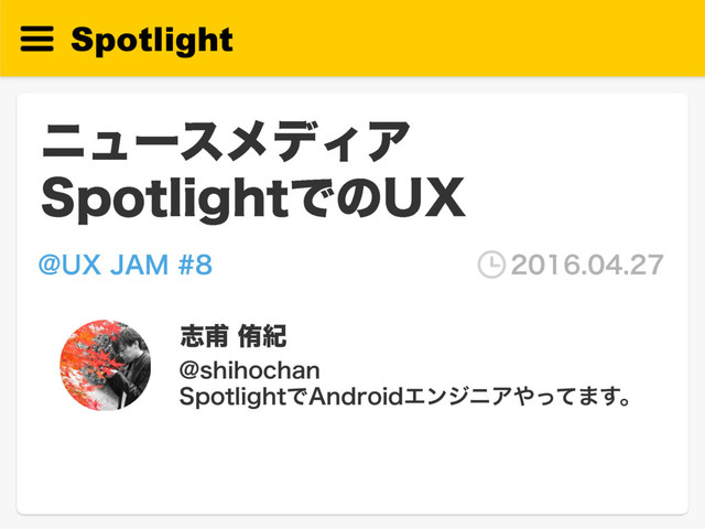 Spotlight χϡʔεϝσΟΞ 4QPUMJHIUͰͷ69 ࢤำါل !TIJIPDIBO 4QPUMJHIUͰ"OESPJEΤϯδχΞͬͯ·͢ɻ !69+".