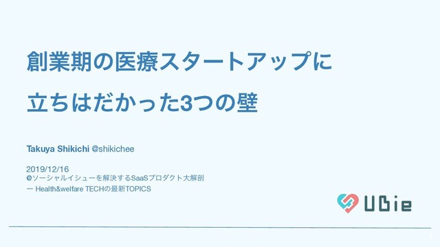 Ubieは、タブレットでの問診プロダクトを病院に提供しています。2017年5月に創業&開発を開始し、今では、全国各地の病院に導入している拡大期の真っ只中です。しかし、そう簡単な道のりではありませんでした。病院という特殊な環境と創業期というカオスなフェーズにて、2年半で乗り越えてきた3つの壁について話しました。