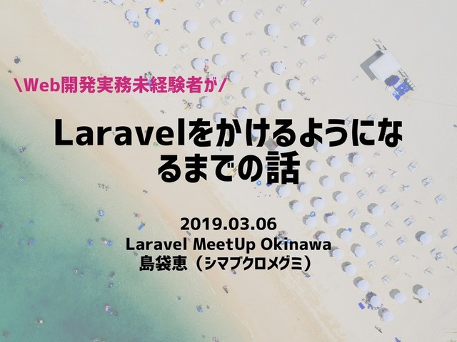 Laravelをかけるようにな るまでの話 2019.03.06 Laravel MeetUp Okinawa 島袋恵(シマブクロメグミ) \Web開発実務未経験者が/