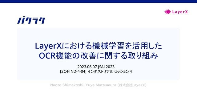 2023.06.06 - 2023.06.09に開催された2023年度 人工知能学会全国大会(第37回)のインダストリアルセッションで登壇した内容です。 LayerXにおけるOCR機能の改善の歴史について説明しました。