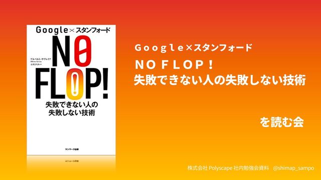 Google×スタンフォード NO FLOP! 失敗できない⼈の失敗しない技術 を読む会 株式会社 Polyscape 社内勉強会資料 @shimap_sampo