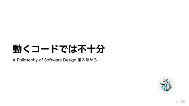 動くコードでは不十分 A Philosophy of Software Design 第3章から 1 / 20