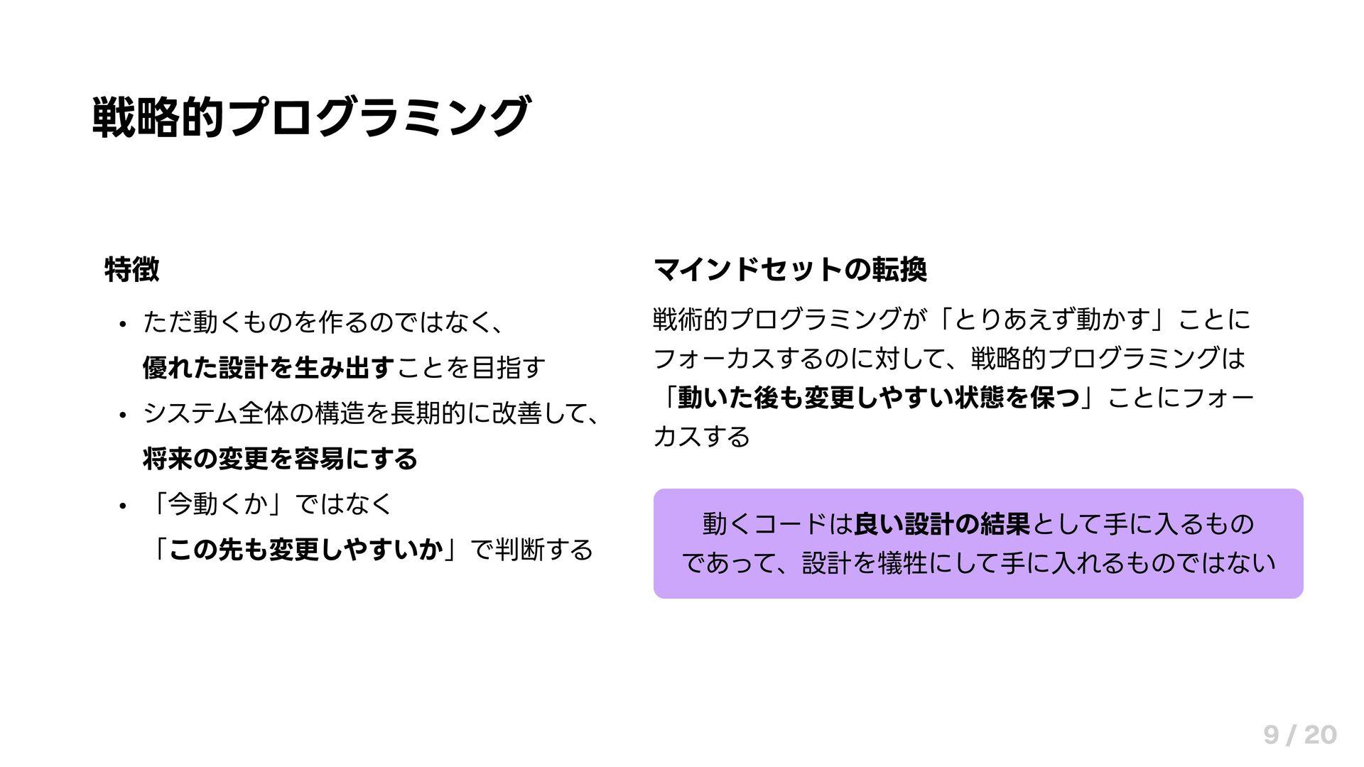 戦略的プログラミング 「動くコードでは不十分だ」という認識から始まる 8 / 20