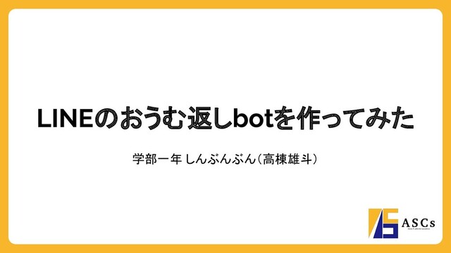 - 学生エンジニアコミュニティ「すごくなりたいがくせいぐるーぷ( SGG)」運営 - 会津大学プロダクト開発コミュニティ「 ASCs」代表 - FEもBEもインフラ(クラウドからオンプレまで)もだいたい全部やるけど、主に BE をやってます(器用貧乏) - 最近はずっとGo書いてるけどそろそろRustやりたい - 興味分野は認証/アイデンティティ管理 - 好きな仕様書はDecentralized Identifiers (DIDs) v1.0(W3C) - 最近の悩み: オフラインのインターンに行きたい(夏に行った Yahooはオンライン だった) 自己紹介 LINEのおうむ返し botを作ってみた https://shinbunbun.info @shinbunbun_
