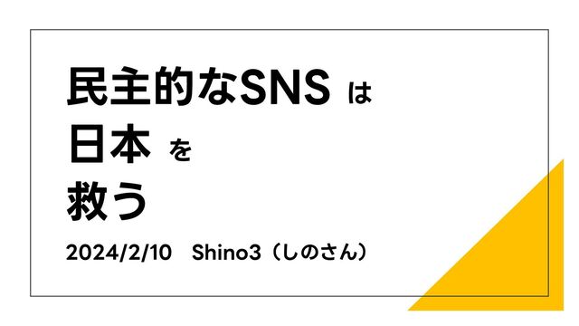 民主的なSNS は 日本 を 救う 2024/2/10 Shino3(しのさん)