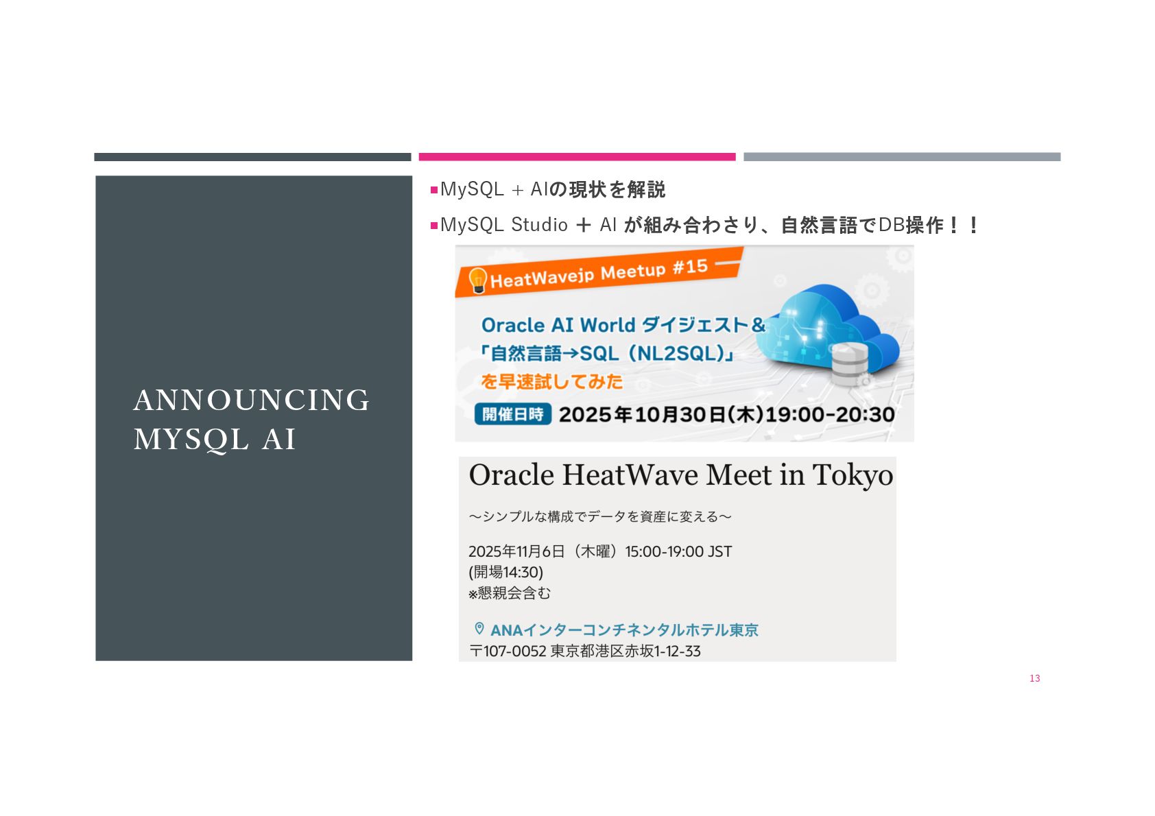 ANNOUNCING MYSQL AI ¡MySQL + AIの現状を解説 ¡MySQL Studio + AI